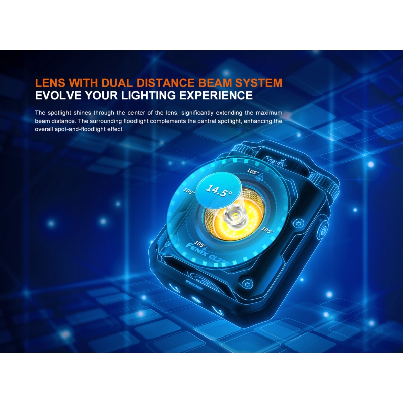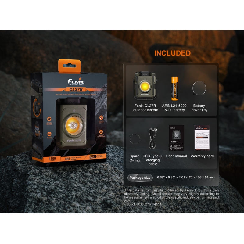 The Fenix CL27R Rechargeable Flashlight is a great choice for those who want it all. Two rotary switches control the brightness level and color temperature. A push-button switch on the top allows you to choose between flood light, spot light, combined spot and flood light, red light and red flash. A battery charge indicator lets you know it's time to recharge the included 5000mAh battery, which is removable, via the USB-C port. Plug in the powerbank and continue using this high-end rechargeable flashlight for extended runtime. The 360° handle, tripod mount and magnetic base allow you to place the hands-free light anywhere you need it. And with an IP66 rating, it's tough enough for work, play and everything in between.