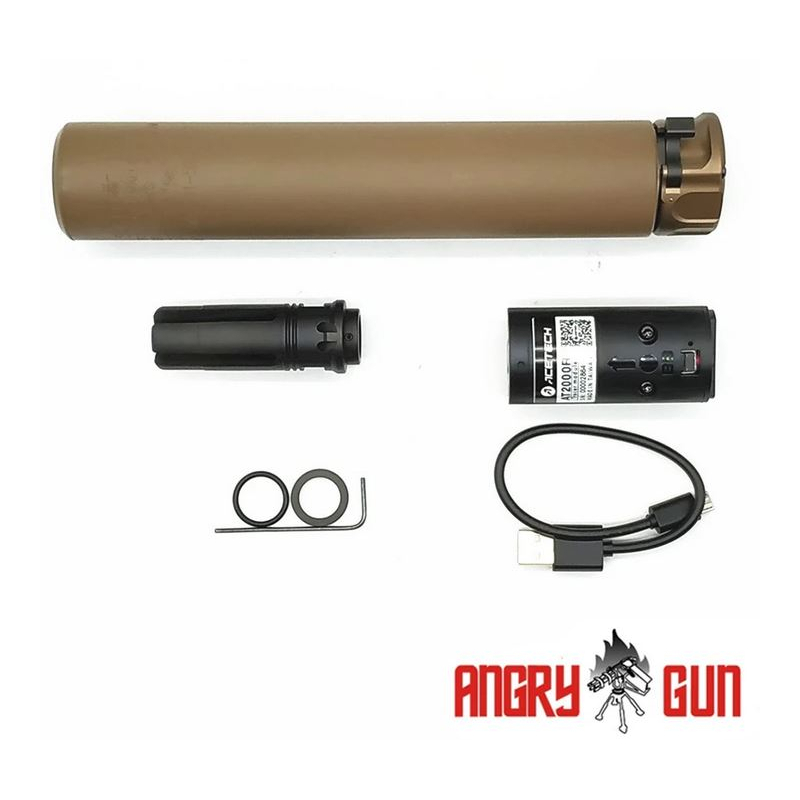 The highlight of this setup is the integrated AT2000R tracer unit by Acetech, which illuminates red and green BBs at a rate of up to 30 BBs per second. The unit is powered by rechargeable 10440 Li-ion batteries (not included) and recharges via a Micro USB connector. The tracer unit can be removed from the suppressor for charging or maintenance as needed.