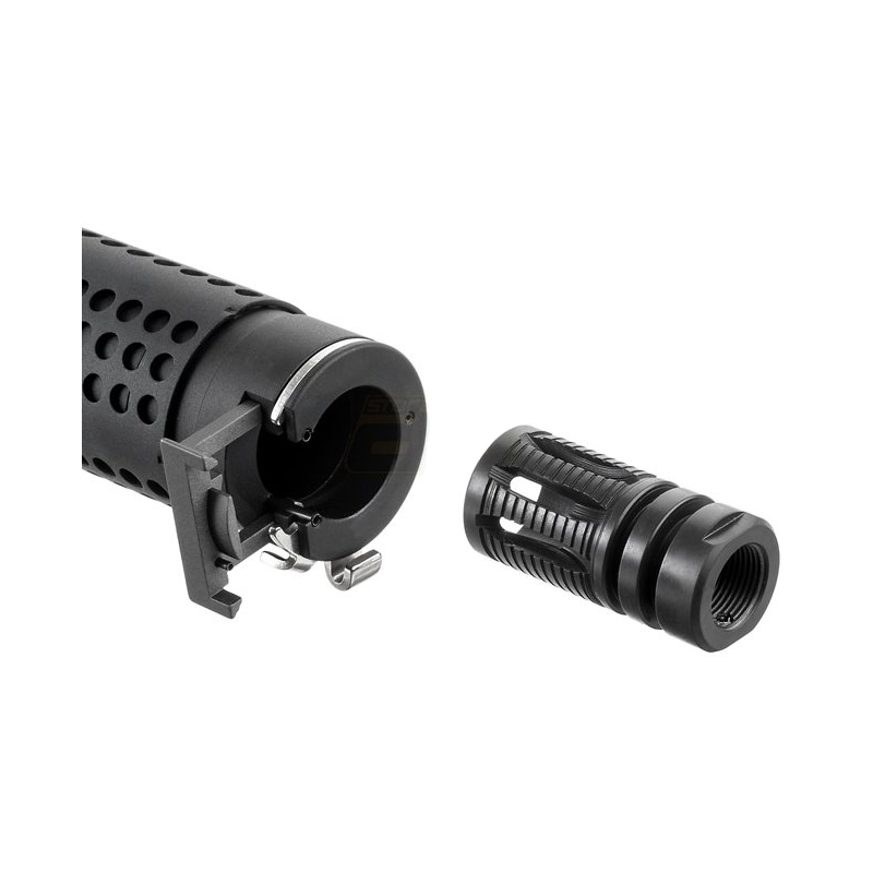 Looking for a tracer suppressor but don’t want to lose the Mil-Sim look of your rifle? Want to fire both red and green tracer BBs while keeping a realistic suppressor with QD mounting? The solution is the metal KAC Predator suppressor with a Quick-Detach (QD) system, allowing you to attach the suppressor quickly when you need to track your shots in low visibility (evenings, nighttime, or when entering dark buildings). On the other hand, if you don’t need the suppressor, simply detach it without tools or complicated unscrewing. This gives you a shorter and more compact weapon while maintaining the ability to mount the tracer suppressor in just seconds. Its full-metal suppressor and compensator construction enhances authenticity, further emphasized by the real KAC markings. Unlike most tracer suppressors, the KAC Predator looks realistic, perfect for players replicating authentic military loadouts.