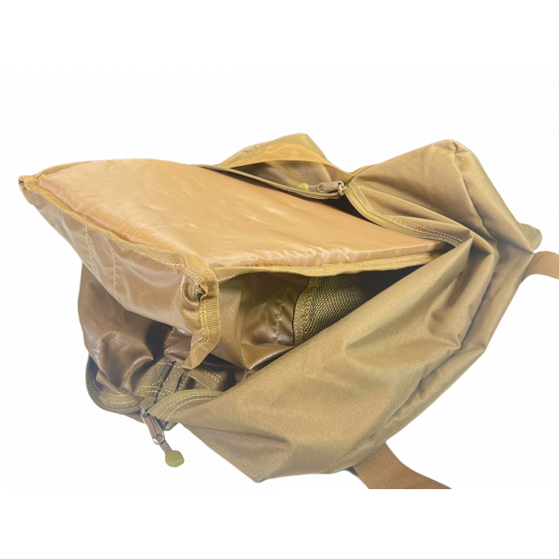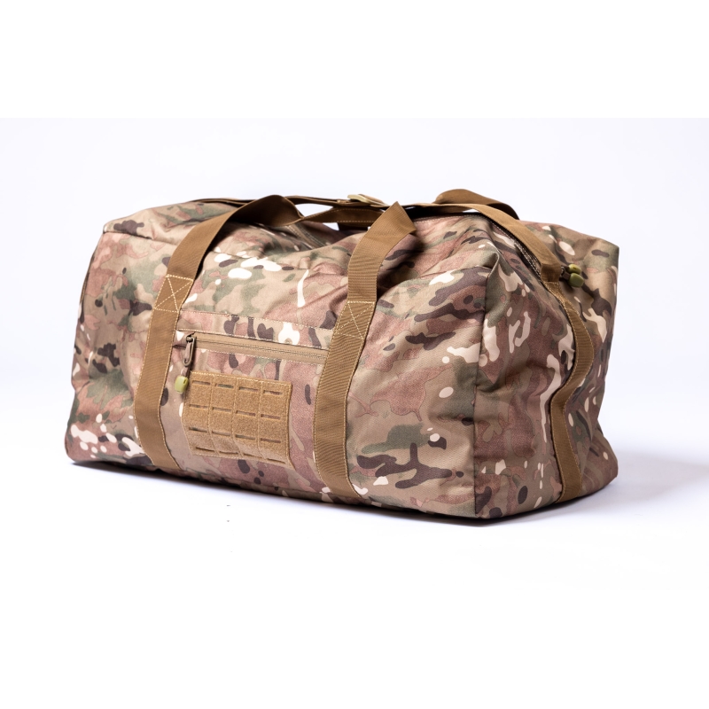 On one side, you'll find a practical document pocket and a Molle panel with a Velcro strip for attaching patches. The front has a transparent window for a name tag and the main storage compartment opens with a two-way zipper with pull tabs for easy access.
