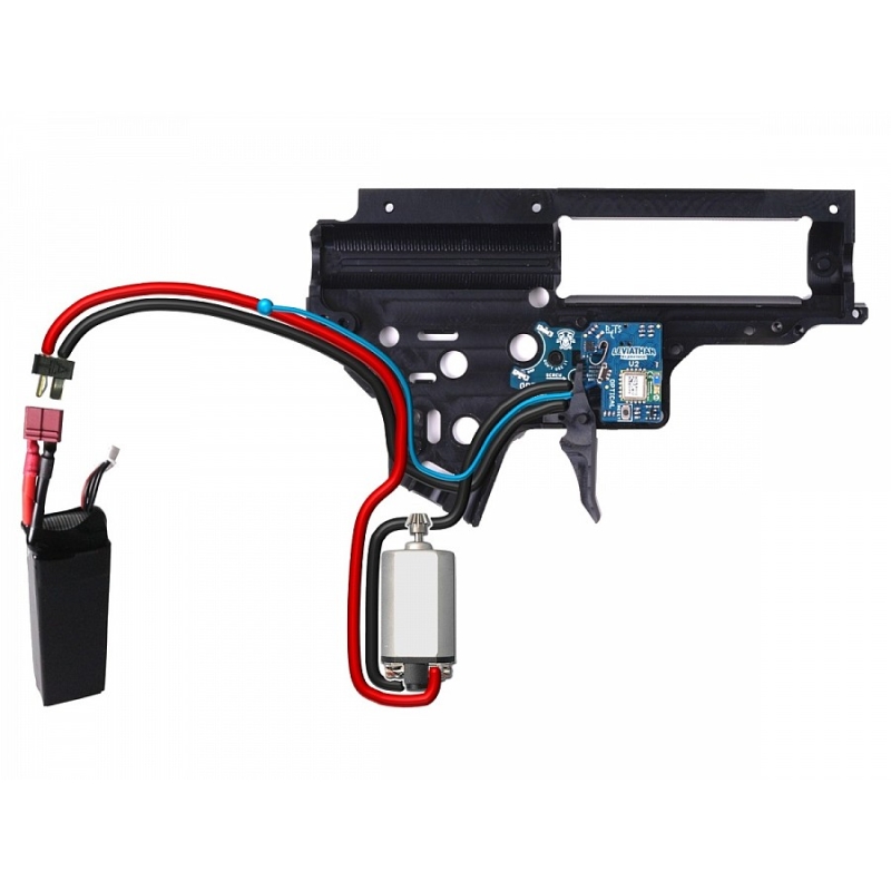 ETU unit Scylla V2 by JeffTron with cabling output to the stock. Optical and magnetic sensors for maximum reliability. Wireless setup via an app for iOS and Android. Adjustable trigger sensitivity and firing speed. Various firing modes (pre-cocking, binary trigger, burst, and more). Compatible with TM standard V2 gearboxes. Easy installation and...