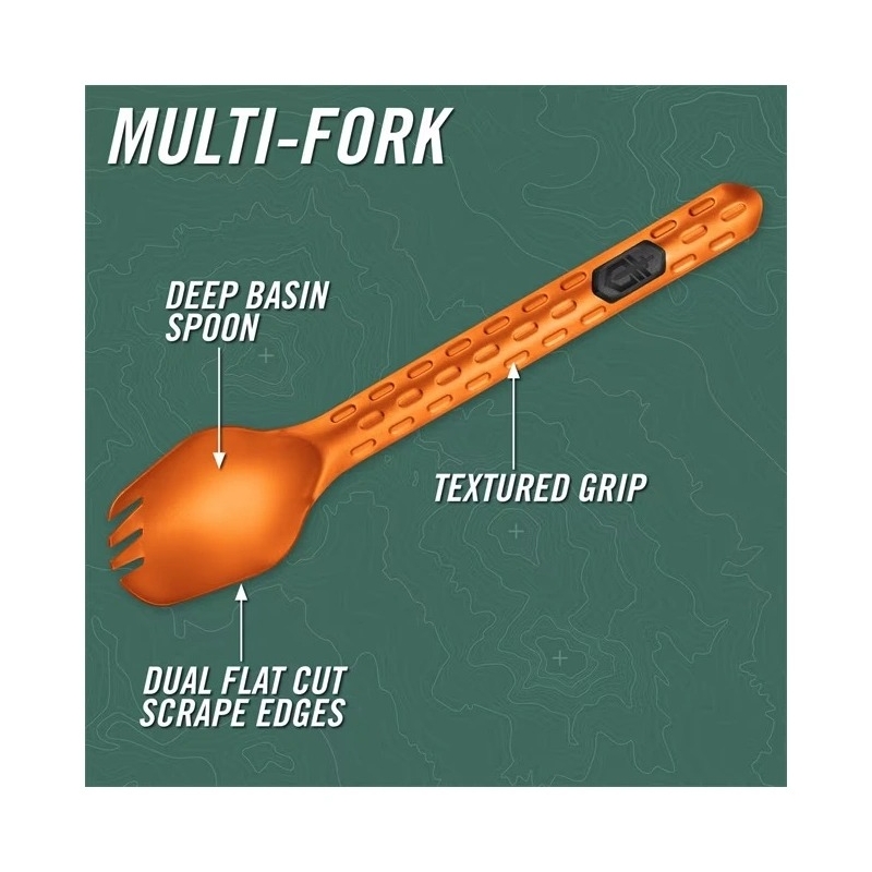 GERBER® ComplEAT Multi Fork multifunctional cutlery in orange.