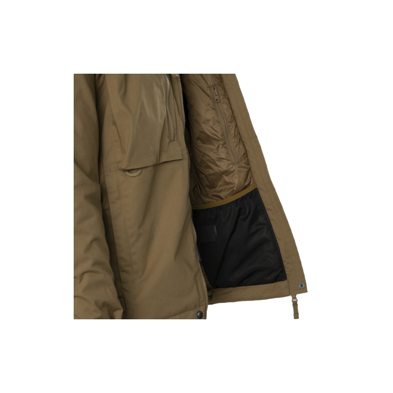 Looking for a reliable winter jacket that can handle outdoor work in freezing temperatures, long mountain trips or everyday wear in the city? Need an outer layer that keeps you warm, breathes, resists sparks and can be waxed for higher protection against rain and snow? Then the YUKON Climashield® Apex is your best choice. It is a winter jacket built for demanding conditions. Inside, insulation Climashield® Apex ensures warmth even when wet. The outer fabric Duracanvas® is significantly more durable than standard synthetic jackets, resisting sparks from fire, wood splinters, sharp branches and rough work in mountainous terrain. YUKON offers 8 pockets, a large adjustable hood, a two-way zipper, underarm ventilation, internal organisers, paracord loops and even a MOLLE system at the bottom hem. It is suitable for freezing temperatures down to –25 to –16 °C, yet still looks great in the city thanks to its clean, civilian appearance. It can naturally be worn in milder weather too. Machine-washable on a gentle cycle at 30 °C — without ironing, bleaching or chemical agents.
