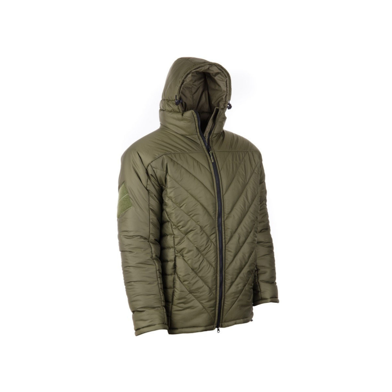CLIMASHIELD® Apex LEVEL 7 Gen III Winter Jacket by Helikon-Tex in Alpha Green. Provides protection from extreme cold, wind, and light rain. The outer nylon layer is highly durable and quick-drying. It is highly packable and easily fits into a large cargo pocket. Adjustable collar with fleece lining and multiple pockets, including mesh ones for drying...