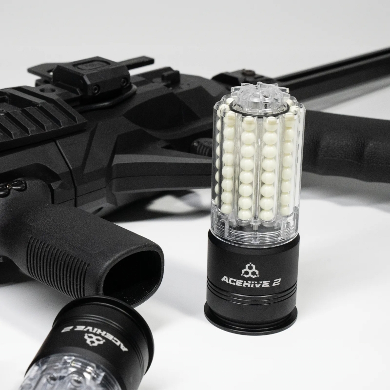 Plynový 40mm granát AceHive 2 nadväzuje na úspech prvej generácie a posúva ju ešte ďalej. Vďaka prepracovanému vnútornému systému ponúka lepšie tesnenie, rýchlejší reset ventilu a vyššiu spoľahlivosť aj pri rýchlom opakovanom použití. Zachováva si hlavnú výhodu platformy, teda extrémne rýchle plnenie pomocou plničky AceHive SPAWNER (nie je súčasťou), ktoré trvá doslova sekundu. Upravená konštrukcia zároveň zabezpečuje rovnomernejší rozptyl BBs, takže pri výstrele efektívne pokryjete priestor bez hluchých miest. Nové čierne dno dodáva granátu taktickejší vzhľad bez výrazných kontrastov. Ak sa vám AceHive 2 páči, ale ešte nemáte granátomet, odporúčame AceTech VOLCANO 40mm, ktorý kombinuje granátomet s nasvetľovacou jednotkou a efektom plameňa.