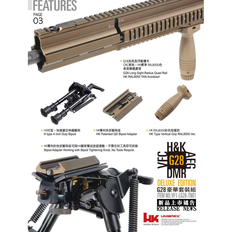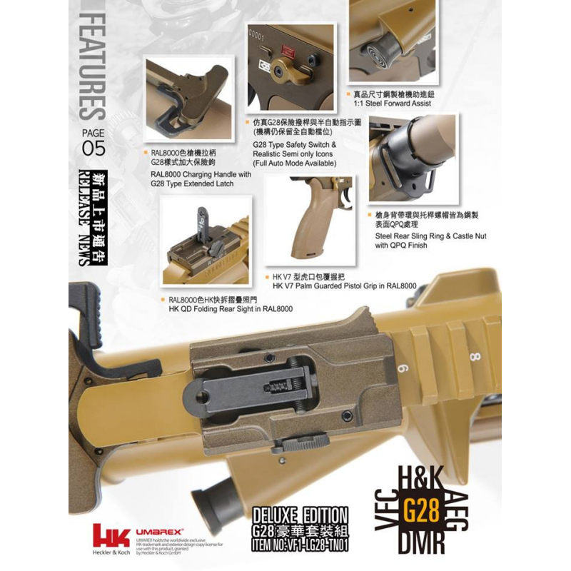 Airsoftová útočná puška HK416 A5 v verzii AEG a vo vyhotovení piesková (RAL 8000). Umarex kombinuje realistické detaily kovového tela s ladenými vnútornými časťami od VFC. Plne licencovaná puška s razením Heckler & Koch. Vylepšený mechabox V2.1 ECS (V2 s rýchlou výmenou pružiny cez Buffer), mosfet (len pre 7.4V batérie) a presná hlaveň. The Only Easy...