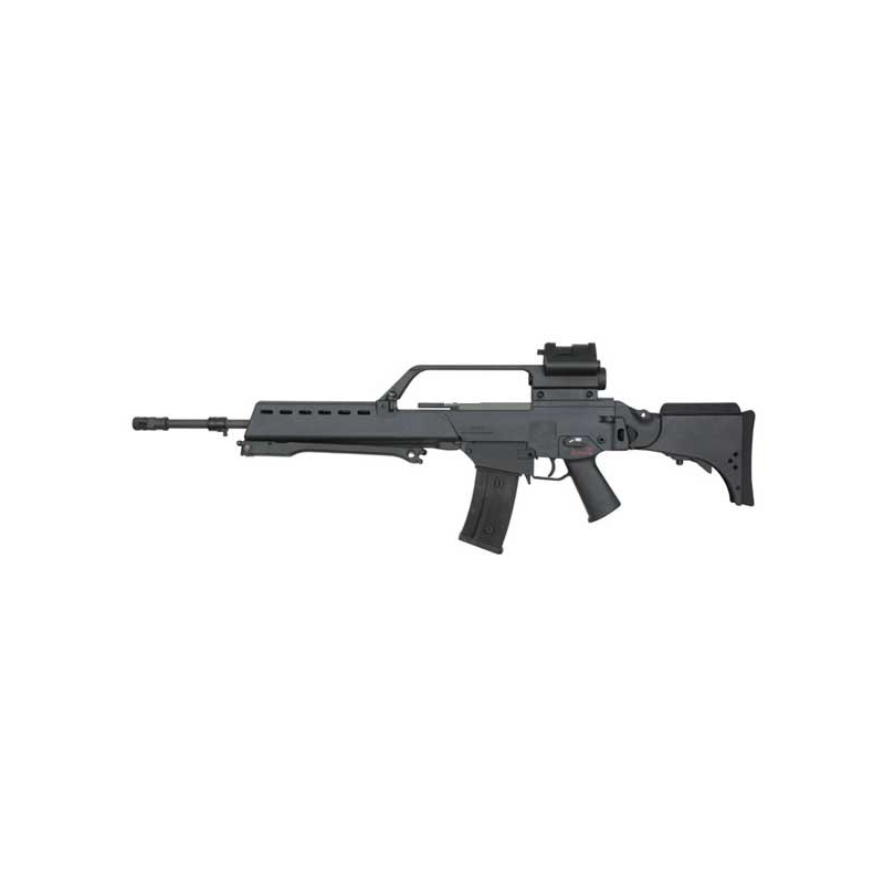 AEG útočná puška SLV36 Sportline (HK G36C) od ASG v čiernej. Kompaktná a ľahká AEG puška. Výkon 105 m/s. QSC systém rýchlej výmeny pružiny. Ideálna pre začiatočníkov. Sklopná pažba skracuje dĺžku zbrane na 51 cm pre jednoduchý transport. RIS lišty na montáž príslušenstva. Pevné mieridlá a nosné ucho s RIS lištou.
