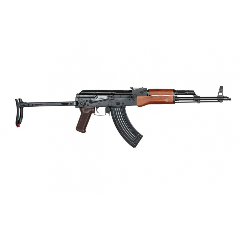 AEG puška AKMS (EL-AKMS) zo série Essential od E&L v prevedení z oxidovanej ocele s dreveným predpažbím.