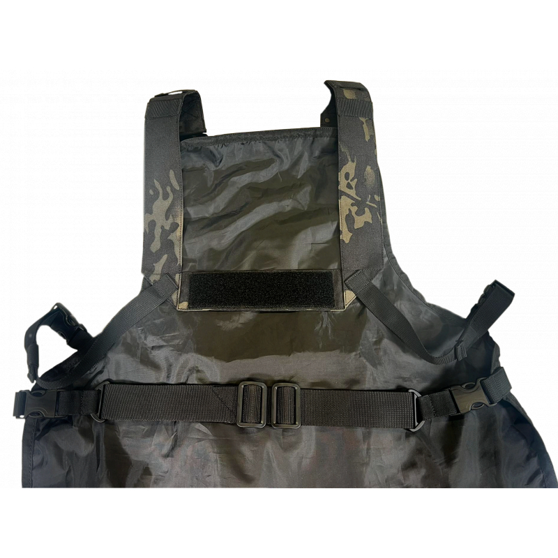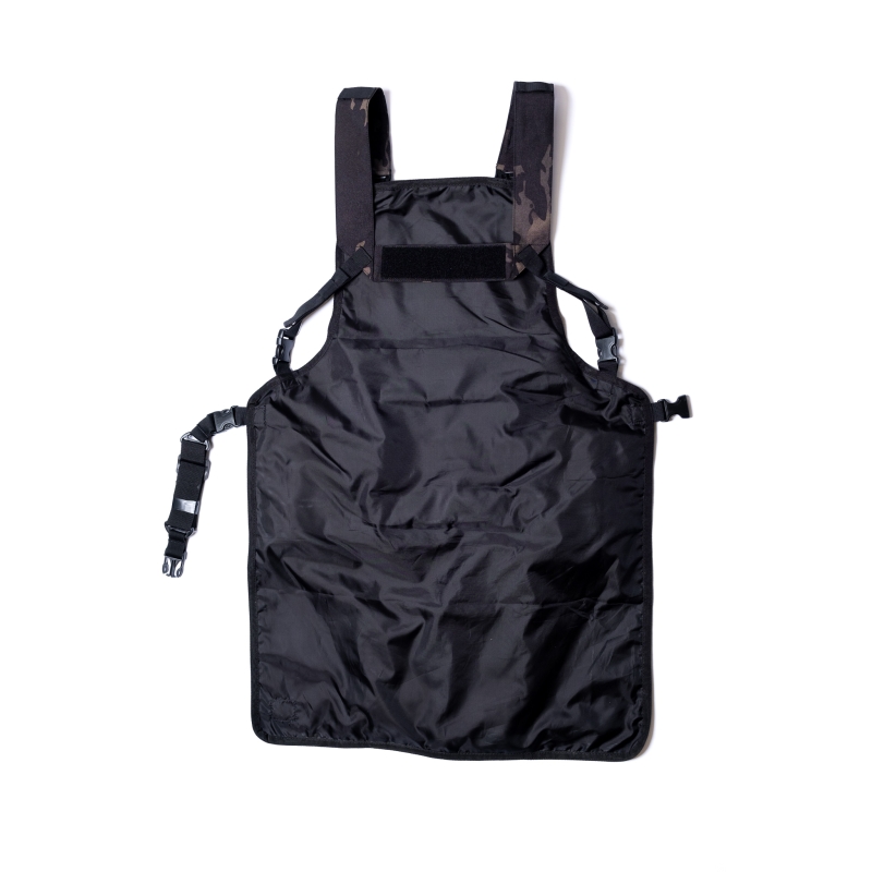 Táto zástera z odolnej látky Cordura je vybavená laserom rezaným molle panelom na hrudi, ktorý umožňuje pripojenie vreckovín pre grilovacie vybavenie a taktiež umožňuje pripnutie nášiviek na ňom vďaka suchému zipsu (velcro).