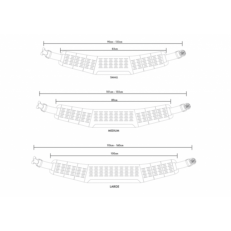 | Dĺžka celého opasku [cm] | 90-133 | 101 - 155 | 110-160 |