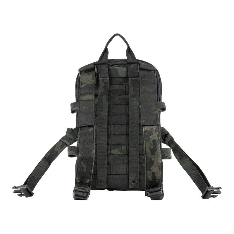 Na čelní straně batohu najdete dvě ploché kapsy na umístění menších věcí, které chcete mít rychle při ruce. Za kapsami pak jsou dvě dvě různě objemné, rozšířitelné komory. Větší z komor pohodlně pojme větrovku, zásobu jídla na den nebo až dvoulitrový hydratační vak. Menší komora je vhodná na lékárničku popřípadě prostředky na orientaci. Mezi velkou a malou kapsu najdete velký VELCRO panel na vaše nášivky Zadní strana batohu je pokryta MOLLE/PALS vazbou, která, stejně jako přiložené FASTEX přezky, slouží k připevnění k systému VX. Ramenní popruhy batohu jsou plně nastavitelné a mají své průvlaky na protažení hadičky hydratačního vaku.