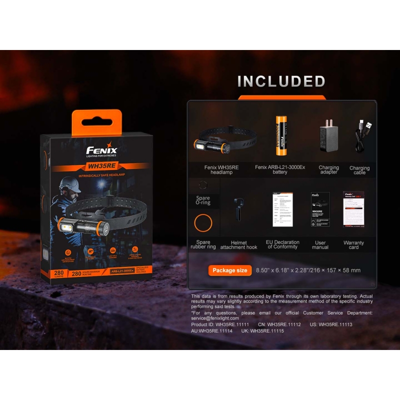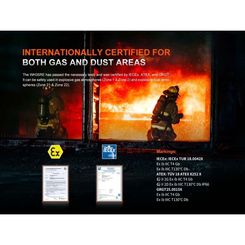 Hľadáte spoľahlivú a certifikovanú čelovku na prácu v prostredí s rizikom výbuchu alebo vznietenia? Potrebujete bezpečné svetlo, ktoré spĺňa prísne normy ATEX a zároveň ponúka praktický výkon na každodenné použitie? Chcete odolnú čelovku s dlhou výdržou, ktorú je možné používať aj mimo hlavového držiaka? Potom je Fenix WH35RE presne pre vás. Táto profesionálna pracovná čelovka je určená na použitie vo výbušných atmosférach zón 1–2 (plyny) a 21–22 (prach) a je certifikovaná podľa ATEX, IECEx a GRGT. Ponúka maximálny výkon 280 lumenov, veľmi široký a rovnomerný kužeľ a až 280 hodín prevádzky v najnižšom režime. Napájaná je špeciálnym certifikovaným Li-ion akumulátorom ARB-L21-3000Ex, ktorý sa nabíja priamo v svietidle cez USB-C. Vďaka možnosti vybrať telo z držiaka a oceľovej spone je možné svetlo používať aj ako ručné alebo hrudné pracovné svetlo. Robustná konštrukcia, ochrana IP66 a vysoká nárazová odolnosť robia z WH35RE ideálny nástroj pre priemysel, energetiku, chémiu, hasičov aj záchranné zložky.