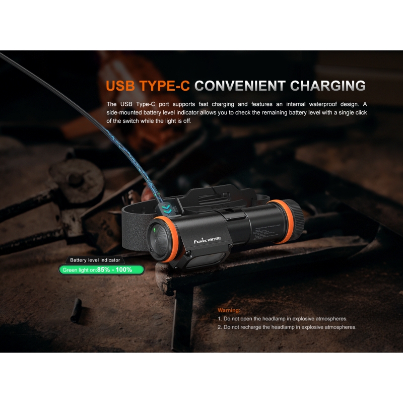 Profesionálna nabíjateľná čelovka ATEX WH35RE od Fenix v prevedení čierna.