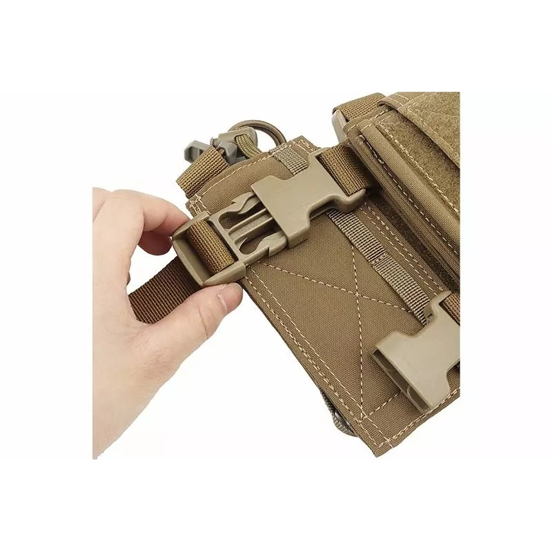 WoSporT hrudný MOLLE expansion panel pre chest rig v Coyote prevedení rozširuje váš rig o ďalšiu MOLLE väzbu priamo na hrudi. Inteligentné riešenie pre uchytenie GPS, výklopných puzdier na telefón alebo admin sumiek bez ubierania miesta zásobníkom.