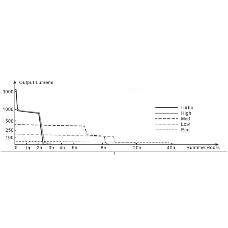 Inteligentní ochrana proti přehřátí - vzhledem k tomu, že svítilna dosahuje obrovského výkonu 3100 lumenů, dochází u ní k nárůstu teploty. Pokud teplota překročí 60°C, dojde k automatickému snížení výkonu. Jakmile teplota klesne pod 60°C, je možné opět používat nejvyšší výkon.
