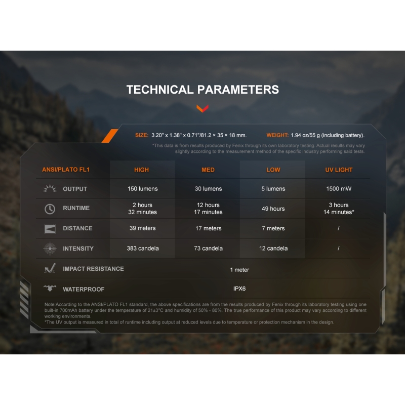 Fenix SW05R-UV je praktické a kompaktné svietidlo, ktoré poskytuje výkonné biele aj UV svetlo. Vďaka otočnej hlave, klipu a magnetickej pätke ho možno ľahko pripevniť na oblečenie, výstroj alebo kovové povrchy. Svietidlo ponúka 3 úrovne výkonu bieleho svetla s maximálnym svetelným tokom 150 lúmenov a UV diódu s výkonom 1500 mW. Napájané je integrovaným 700mAh akumulátorom, ktorý sa nabíja cez USB-C konektor. Svietidlo je ľahké a odolné, vyrobené z hliníkovej zliatiny s eloxovaným povrchom. Vďaka vodeodolnosti IPX6 a odolnosti proti nárazu je vhodné do náročných podmienok. SW05R-UV je ideálnou voľbou pre profesionálov, policajtov, technikov, outdoorových nadšencov aj na každodenné nosenie (EDC).