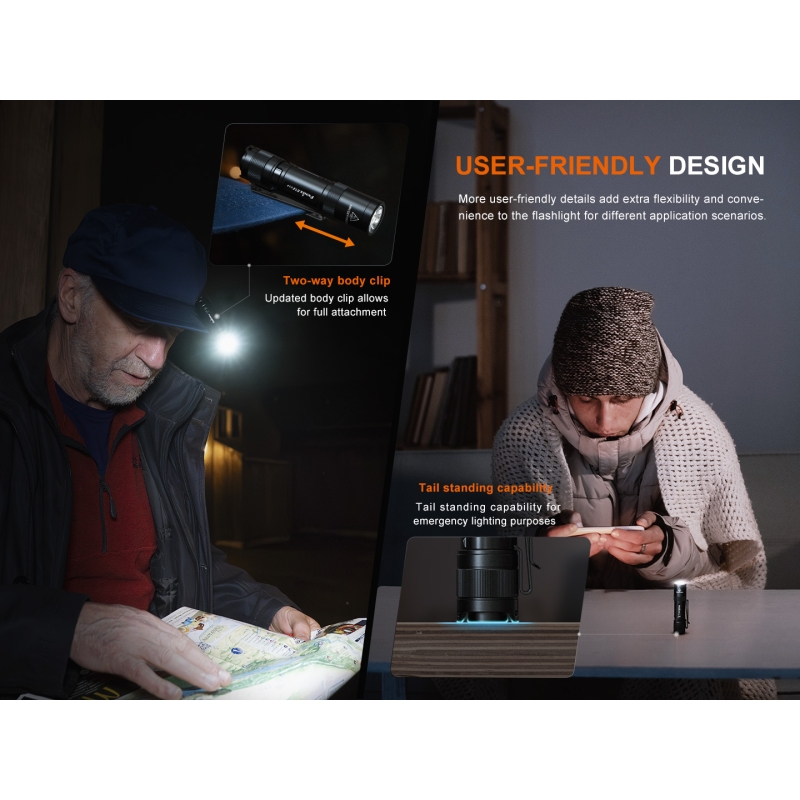 Hľadáte malé, spoľahlivé a odolné vreckové svietidlo, ktoré môžete mať stále pri sebe? Chcete jednoduché ovládanie, dlhú výdrž a bežné napájanie AA batériami? Potrebujete svietidlo na každodenné nosenie (EDC), ktoré zvládne aj náročnejšie podmienky? Potom je Fenix E12 V3.0 ideálnou voľbou. Tretia generácia obľúbeného modelu prináša výkon až 200 lumenov, kompaktné rozmery a široký svetelný kužeľ vďaka TIR kolimátoru s dosvitom až 78 m. Veľkou výhodou je kovový zadný spínač s integrovaným magnetom, ktorý umožňuje prichytenie na kovový povrch alebo postavenie svietidla „na sviečku“. Vďaka napájaniu jednou AA batériou, nízkej hmotnosti a vysokej odolnosti je E12 V3.0 perfektná na EDC nosenie, prácu aj domácnosť.