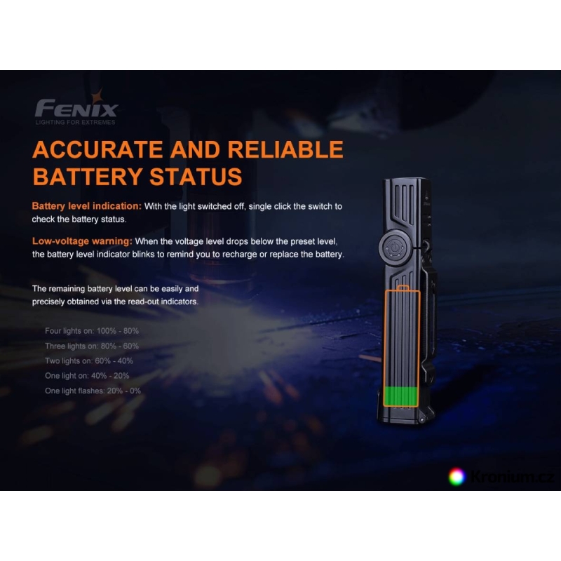 Dobíjacia batéria, ktorá ťa nenechá vypadnúť z hry. Nabíjaciu batériu Fenix 18650 s kapacitou 3500 mAh (ARB-L18-3500U) možno nabíjať cez port micro USB aj cez nabíjačku. V anóde je zabudovaný ochranný obvod, ktorý je krytý nitovaným oceľovým krytom. Batéria je celá zakrytá oceľovým krytom, čím sa eliminuje riziko skratu spôsobeného nárazom. Stav nabíjania...