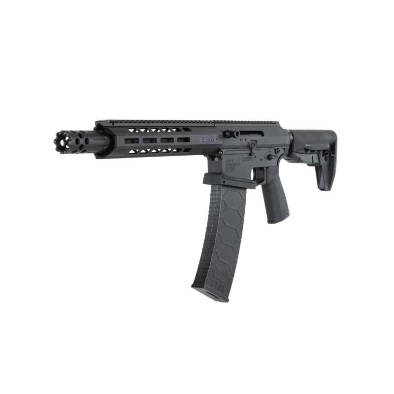 Automatická AEG brokovnica Gen-12 Kestrel ETU od Double Bell s čiernym telom typu AR (M4) je určená pre agresívny herný štýl. Plne licencované značenie Genesis Arms LLC dodáva realistický vzhľad, zatiaľ čo elektronika Kestrel™ ETU zabezpečuje rýchlu odozvu spúšte. Odolné hliníkové telo a CNC KeyMod predpažbie vzbudzujú rešpekt rovnako ako výkon cca 110 m/s.