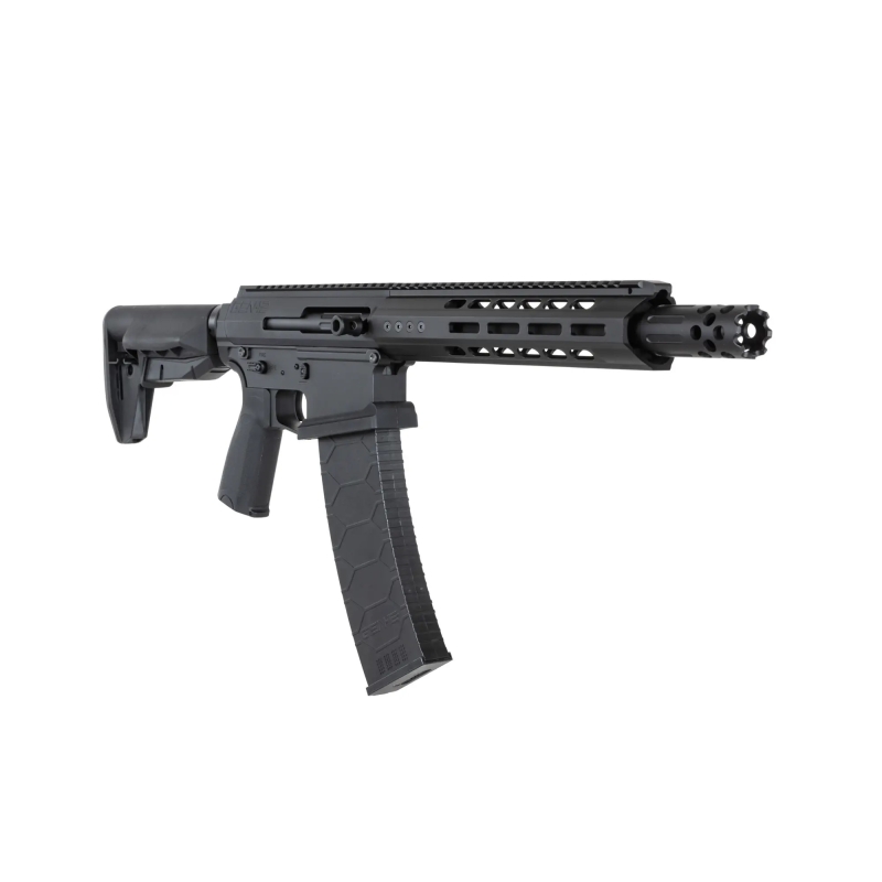 Genesis Arms Gen-12 Kestrel™ ETU od značky Double Bell je elektrická airsoftová brokovnica inšpirovaná ostrou predlohou Genesis Arms Gen-12 s originálnym ražením na tele. Zbraň je koncipovaná ako plne automatická AEG brokovnica s mechaboxom V2 QSC so systémom rýchlej výmeny pružiny. Vnútorná rotačná hop-up komora a presná 6.02 mm vnútorná hlaveň s dĺžkou 285 mm zabezpečujú stabilný výkon a dobrú presnosť aj v režime full-auto. Elektronická procesorová jednotka Kestrel™ ETU ponúka funkcie ako pre-cocking v 5 stupňoch, aktívne brzdenie motora, ochranu proti zablokovaniu rotora aj inteligentnú detekciu napätia batérie v rozsahu 6–17 V. V praxi to znamená rýchlu odozvu spúšte a dlhšiu životnosť vnútorných dielov. V mechaboxe nájdete oceľové ozubené kolesá s pomerom 18:1 a 8 mm guľôčkové ložiská pre plynulý chod. Z nášho pohľadu ide o silného vyzývateľa automatických AEG brokovníc AA12 a SGR-12 od Tokyo Marui, ktorý však ponúka vyšší základný výkon, ETU jednotku určenú pre výkonné Li-Pol batérie a špičkové hliníkové telo s ražbou. Gen-12 jednoducho vyzerá ako "M4ka na steroidoch". Keď s ňou vletíte do dverí, protihráči na sekundu zamrznú, pretože netušia, či proti nim stojí brokovnica alebo tank so zásobníkom na 900 rán. Malé upozornenie na záver: hoci telo vychádza z AR15, štandardné AEG zásobníky M4 do zbrane pasovať nebudú. Sú o niečo širšie, pretože napodobňujú reálne zásobníky kalibru 12 GA. Ak ste fanúšikom akčných filmov, ponúkame aj sivú variantu s TTI ražením, ktorá sa objavila vo filme John Wick 4.