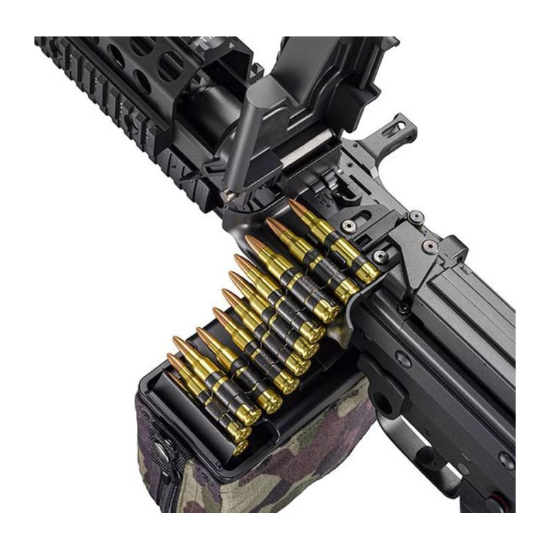 Tokyo Marui MK46 MOD 0 Next-Gen (EBB) zásobník s elektrickým navíjaním pre 1000 guličiek a funkcí imitácie podávania do komory (pri zakúpení pásu na zásobník). Kulomet je hladová mrška, takže je nevyhnutné mať náhradné krmenie po ruke. Tokyo Marui - Nič lepšie neexistuje!
