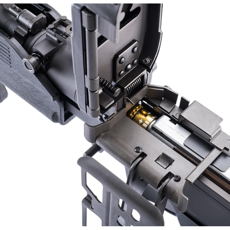 LCT patrí medzi výrobcov známych realistickým spracovaním z lisovanej ocele a model M60 E4 je toho dôkazom. Zbraň má celokovové telo doplnené plastovou pažbou a vďaka hmotnosti 9700 g pôsobí maximálne autenticky. Kvalita spracovania, detaily a pevnosť robia z tohto modelu skutočné monštrum, ktoré sa ťažko porovnáva s lacnejšími modelmi A&K. Na ihrisku zastáva rolu klasického podporného guľometu určeného na potláčaciu paľbu a krytie postupu tímu. Vnútri sa nachádza robustný LCT MIG mechabox (typ „cihla“) s oceľovými prevodmi 18:1, zosilneným polykarbonátovým piestom s plným kovovým ozubením, CNC tryskou, CNC hlavou valca a CNC hlavou piestu. Nechýba ani QSC hliníkový tŕň pružiny, takže na zvýšenie výkonu stačí dokúpiť silnejšiu pružinu. Odporúčame doplniť MOSFET jednotku pre využitie 11.1V batérií. O pohon sa stará motor LCT 26 700 RPM. Podávanie zabezpečuje elektrický zásobník na 3000 BBs s vlastným káblovým spínačom, napájaný 4 AA batériami (nie sú súčasťou). CNC kovová hop-up komora je dostatočne silná aj pre ťažšie BBs a je uložená v QD vonkajšej hlavni. Odporúčaná batéria je 7.4V Li-Pol. Model E4 preslávil film Rambo II ako skrátená verzia pôvodnej M60 z Vietnamu. V balení nájdete aj LCT multitool na údržbu.
