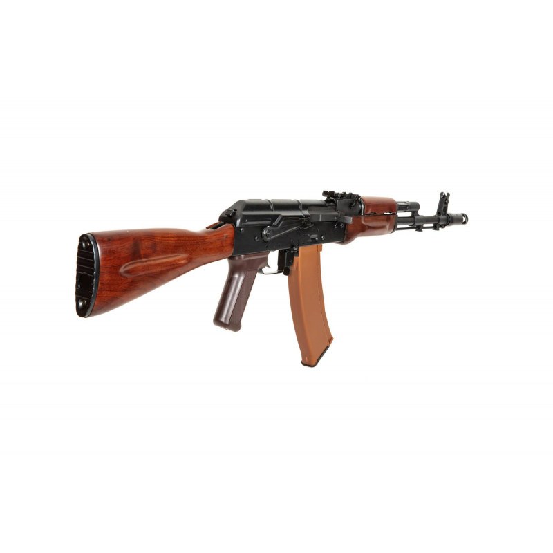 AEG puška AK-74N (EL-AK74N) zo série Essential od E&L v prevedení z oxidovanej ocele s dreveným predpažbím a pažbou.