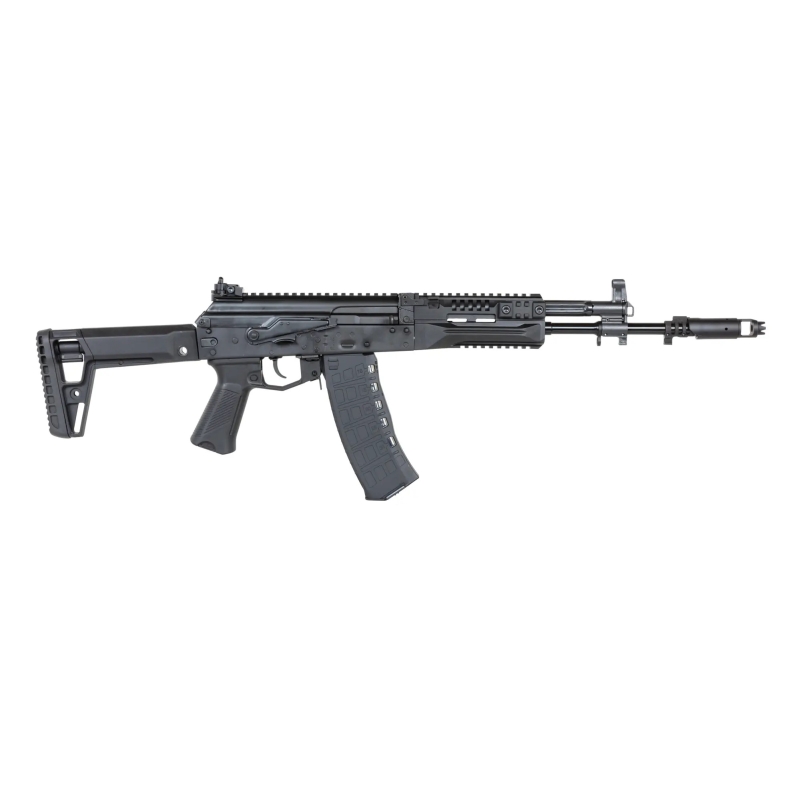 Sklopná pažba v štýle AK-12U je vyrobená z nylonového polyméru, čo znižuje celkovú hmotnosť zbrane bez straty pevnosti. Súčasťou balenia je tiež úsťová brzda, ktorou možno ľahko vymeniť vďaka štandardnému 14mm CCW ľavotočivému závitu.