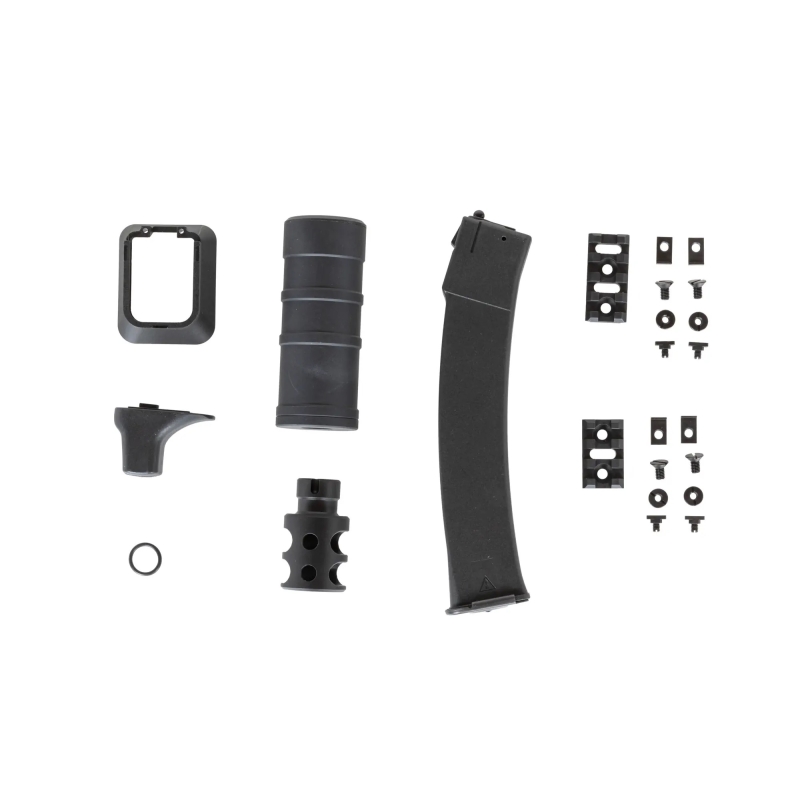 Sklopná pažba ZPT-1 je CNC obrábaná z hliníka a následne anodizovaná pre maximálnu odolnosť. Súčasťou balenia je tiež tlmič SV Saiga-9, ktorý je možné ľahko vymeniť vďaka klasickému ľavotočivému 14mm CCW závitu.