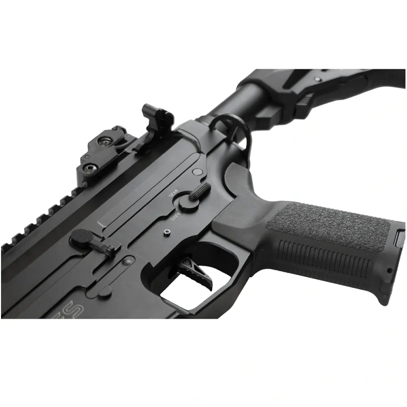 Vďaka procesorovej jednotke Perun V2 Hybrid PRO máte možnosť nastaviť režimy streľby, ochranu batérie aj prednapnutie piestu. O výkon sa stará EPeS vzduchotechnika a presná CNC hop-up komora MAXX M4A-PRO s TDC prítlakom, v ktorej je osadená presná hlaveň Maple Leaf 6,02 mm, s vyfrézovanými drážkami pre centrovacie krúžky eliminujúce vibrácie vo vonkajšej hlavni, a s gumičkou typu Super Macaron 60sh pre absolútnu presnosť, sústrel a neprekonateľný dostrel. V pieste sa nachádza podložkový adaptér, ktorý umožňuje používanie klasických AEG pružín namiesto PSG pružín, takže môžete ladiť výkon od 110 až po 180 m/s; v zbrani je nainštalovaná pružina Guarder M140. O rýchlu reakciu sa starajú CNC ozubené kolieska Solink SR-25 v pomere 18:1 s Short-Stroke úpravou 16:1 na piestovom kolese, ktoré poháňa brushless motor Solink PRO 34k s dlhou osičkou.