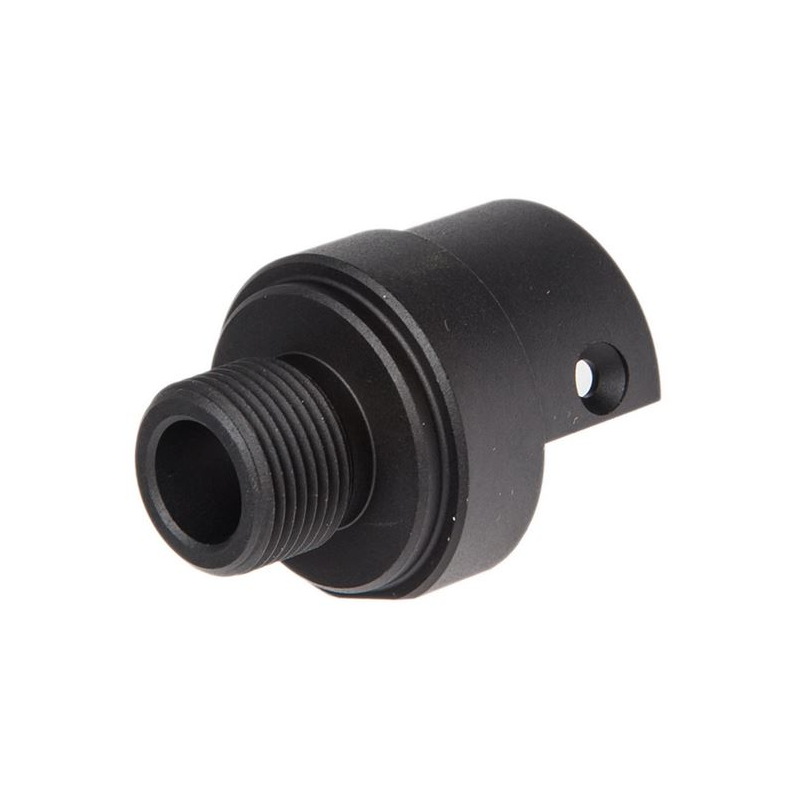 Tento adaptér závitu pre AAP-01 od Action Army je určený pre strelcov, ktorí chcú namontovať tlmič priamo za rám pištole a upraviť vzhľad aj funkčnosť svojej zbrane. Adaptér sa inštaluje namiesto pôvodnej vonkajšej hlavne, čím umožňuje montáž tlmiča hneď za rámom pištole – podobne ako známe G-Spec prestavby pri VSR alebo SRS puškách. Na adaptér možno pripevniť aj bežné predĺženia vonkajšej hlavne pre AEG alebo GBB pušky, čo umožňuje vedenie dlhšej vnútornej hlavne vnútri konverzných kitov alebo dlhších predpažbí s RIS / M-LOK rozhraním.