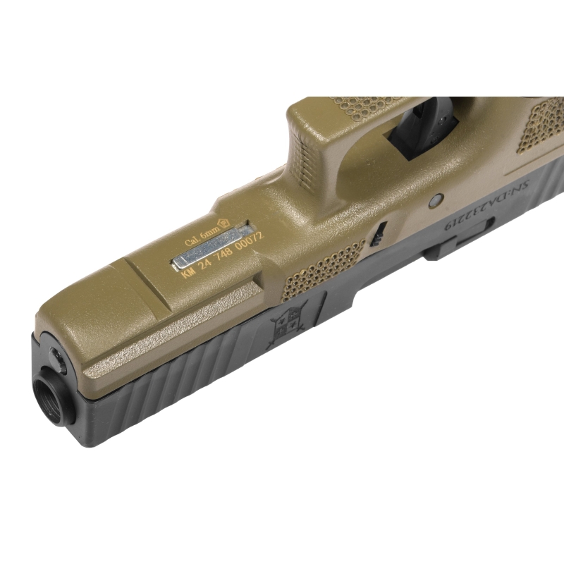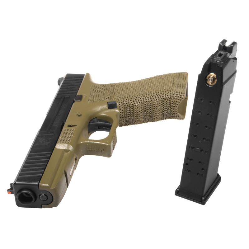 Pištoľ využíva plynový pohon na klasický Green Gas a disponuje realistickým blowback systémom, ktorý simuluje spätný ráz skutočnej zbrane. Hop-up gumička je štandardu GBB/VSR, čo umožňuje jednoduchú výmenu a ladenie výkonu pre maximálnu presnosť. Zásobník je kompatibilný so štandardom TM/WE G-series (TM G17, G18C a WE R17, R18C), takže obstaranie náhradných zásobníkov nebude problém.