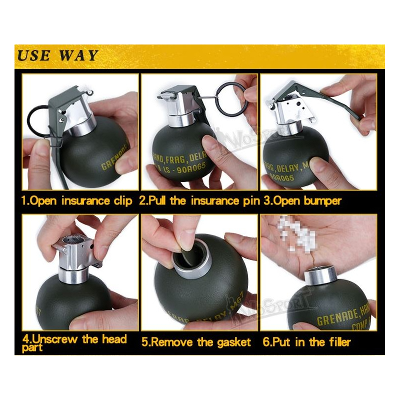 Wosport Dummy granát M67 (imitace) + molle držák - pískový