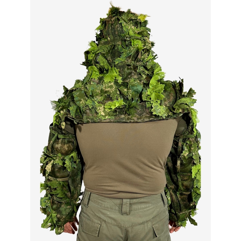Dokonalý maskovací komplet Ghillie Suit od KMCS (Kicking Mustang Concealment System). Ľahký dizajn s odolným prešívaním v úžasnej kamufláži Next-Gen Green. Jednoduché prispôsobenie postave. IRR maskovanie. Obria kapucňa s vnútorným drôtom pre držanie tvaru (možno nosiť s helmou). Možnosť pripnutia okolitej vegetácie. Zmes polyesteru a bavlny s KMCS...