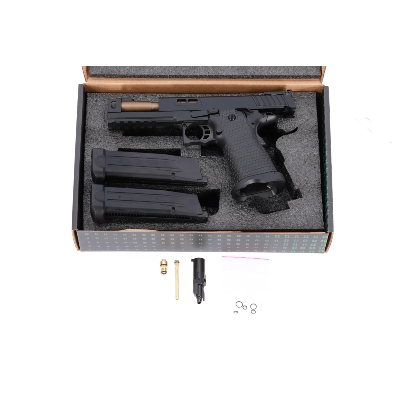 Hľadáte plynovú Hi-Capa pištoľ, ktorá spája pevný kovový záver, výborný výkon a priaznivú cenu? Chcete univerzálnu airsoftovú pištoľ, ktorá ponúka silný blowback, pohodlný úchop s hrubou textúrou a možnosť pripojenia svetla alebo laseru na RIS lištu pod hlavňou? Potrebujete kompletnú sadu so 2 zásobníkmi a náhradnou tryskou? Potom je Specna Arms SA-VGP16 VAPOR™ tou správnou voľbou. Pištoľ je navrhnutá tak, aby bola vhodná aj pre začiatočníkov, no svojím výkonom a kompatibilitou s TM Hi-Capa dielmi poteší aj skúsených hráčov. Poháňaná je plynom typu Green Gas, ktorý poskytuje stabilný výkon a realistický spätný ráz. Kovový čiastočne delený záver s kompenzátorom dodáva zbrani atraktívny vzhľad a ľahší chod záveru, zatiaľ čo Magwell uľahčuje rýchle prebíjanie. Obsahuje klasické bezpečnostné prvky TM Hi-Capa – pákovú poistku a dlaňovú poistku v rukoväti. Pod rámom sa nachádza RIS lišta na montáž svetla alebo laseru a vnútorný závit 11 mm CW pre tlmič alebo kompenzátor. Vďaka dobrému utesneniu, náhradným dielom a druhému zásobníku získate spoľahlivú pištoľ vhodnú do CQB aj na vonkajšie akcie.