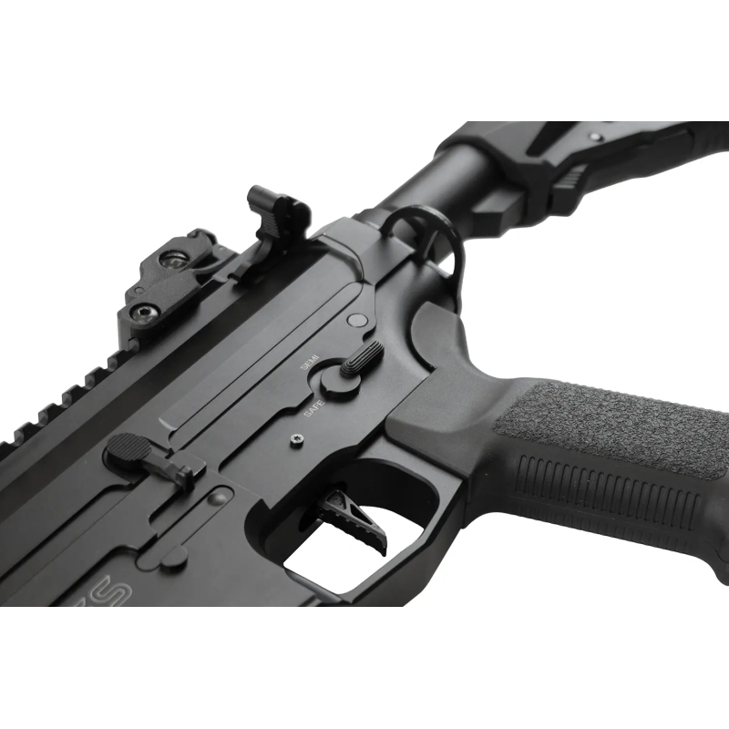 Vďaka HPA jednotke Polarstar F2™ môžete nastaviť výkon od 1 do 4 Joule podľa limitu akcie. O presnosť sa stará presná CNC hop-up komora MAXX M4A-PRO s TDC prítlakom, osadená hlavňou Maple Leaf 6,02 mm s drážkami pre centrovacie krúžky eliminujúce vibrácie a gumičkou Super Macaron 60sh pre špičkovú presnosť a dostrel. F2™ je mini verzia Fusion Engine™ so všetkými jeho výhodami v menšom a flexibilnejšom balení. Dvojitý solenoidový systém umožňuje nezávislé nastavenie trysky a objemu vzduchu. Systém je extrémne ľahký. Prevádzkový tlak: 45–145 PSI. HPA pohon je veľmi tichý, ideálny pre DMR a snajperky. Ďalšie utlmenie je možné pomocou tlmiča s vložkami (napr. EPeS). Pružinou zaťažená tryska zaisťuje spoľahlivé podávanie bez Mid-Cap syndrómu.