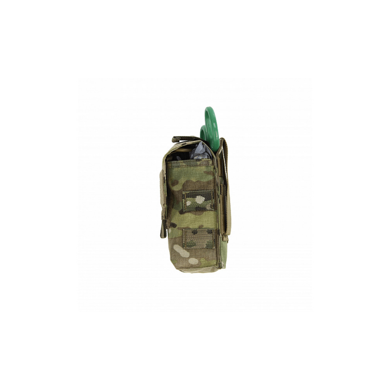 Horné veko má VELCRO panel na zdravotnícku nášivku. Sumka zaberá len 2 rady MOLLE, vďaka čomu je univerzálne uchytenie možné na nosiče plátov, opasky, chest-rigy aj bočné časti výstroja.