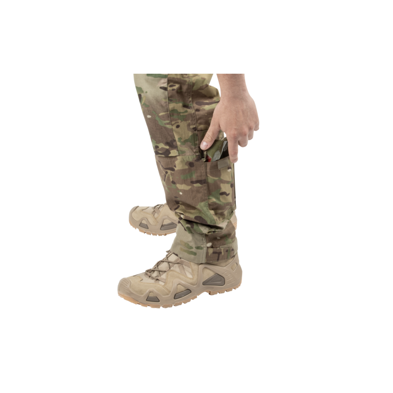 Vrecká na suchý zips sú navyše využiteľné ako improvizované odhadzováky (dump pouch pocket). Možnosť stiahnutia veľkosti suchým zipsom na nohaviciach a kolenách umožňuje individuálnu úpravu nohavíc podľa vašich potrieb.