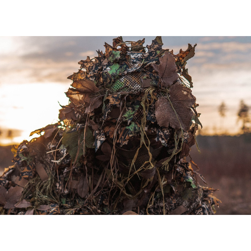 Ľahká a priedušná maskovacia kapucňa s realistickými 3D listami.