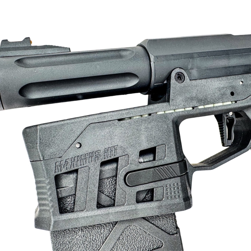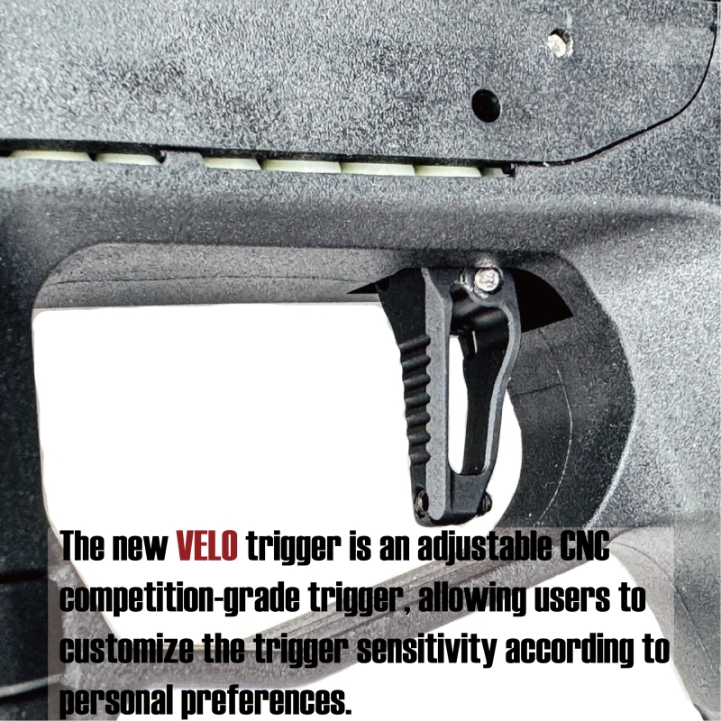 Súčasťou je nová VELO-M4XIMUS spúšť s nastavením citlivosti, aby ste si ju prispôsobili vlastnému štýlu streľby. M4XIMUS je kompatibilný so všetkými uppermi AAP-01, vrátane originálnych aj upgrade verzií ako FUKU-2. Kompatibilný je aj s hliníkovými střenkami CTM a doplnkami. Pre HPA prívod je vybavený QD US Foster (samec) konektorom. Adaptér je určený pre HPA systémy s tlakom 80–120 PSI. Tlak nad 140 PSI môže poškodiť pištoľ aj samotný adaptér. Pozrite si aj náš článok Ako si poskladať HPA zostavu.