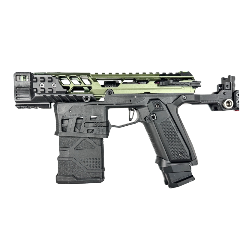 Máte radi HPA systémy a pištoľ AAP-01? Ste hráč, ktorý sa nebojí dávok a bežné pistolové zásobníky vám nestačia? Chcete zásobovať pištoľ cez AEG M4 zásobníky pre M4 (AR15)? Alebo staviate ultimátny speedsoft build a chcete z pištole spraviť kompaktnú karabínu? Potom je CTM TAC M4XIMUS Kit prelomový adaptér, ktorý umožňuje pripojenie HPA systému a používanie AEG M4 zásobníkov s plyn. pištoľou AAP-01. Tento systém poskytuje ovládanie podobné puške M4, pričom zachováva kompaktné rozmery pištole. Hlavná časť tela je vyrobená z pevného nylonu so 45 % sklených vlákien, čo zaručuje extrémnu odolnosť voči nárazom a opotrebeniu. Presné CNC komponenty zabezpečujú spoľahlivé fungovanie a presné vedenie BBs. Bočné okienka vám umožnia vidieť zostávajúce BBs v podávacom kanáli. Pre spoľahlivú funkciu výrobca odporúča silné tlačné zásobníky PTS EPM (EPM-1, EPM-1S).