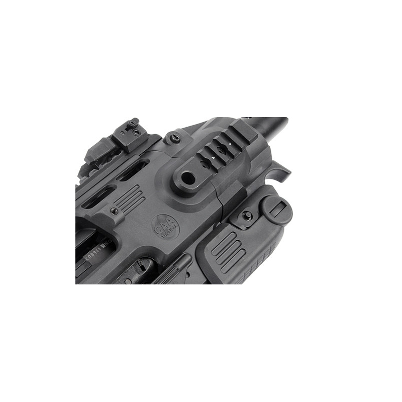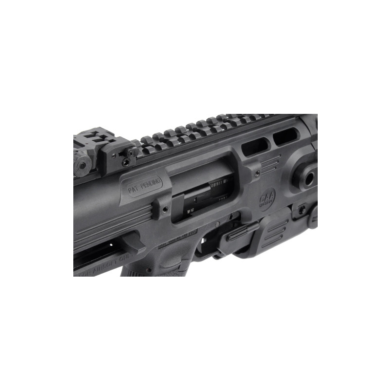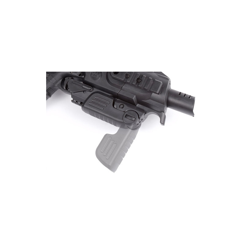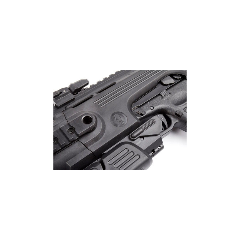 Funkční a promyšlený set poskytuje mnohem lepší držení zbraně a zároveň funguje jako platforma pro montáž velkého množství dalších doplňků. Nyní můžete využívat pistoli v mnohem širším rozsahu, s větší rychlostí střelby a zároveň je kladen důraz na dosažení vyšší přesnosti střelby. Pistole nevyžaduje demontáž či jiné zásadní úpravy, takže stačí jednoduché vložení (zaklapnutí) do konverze. Pistole je integrována do pažbení jako celek a je hlavní funkční díl celého kitu. Na horní části se nachází 24 cm dlouhá RIS lišta, která umožňuje snadnou montáž libovolného zaměřovače, nebo můžete využívat dodaná sklopná mířidla. Další tři kratší raily usnadní montáž libovolného taktického příslušenství. Konverze dále vyniká otvory na QD úchyty popruhu, teleskopickou pažbou se stavitelnou lícnicí a držákem na náhradní zásobník. Součástí balení je i přední sklopný grip pro přední ruku.