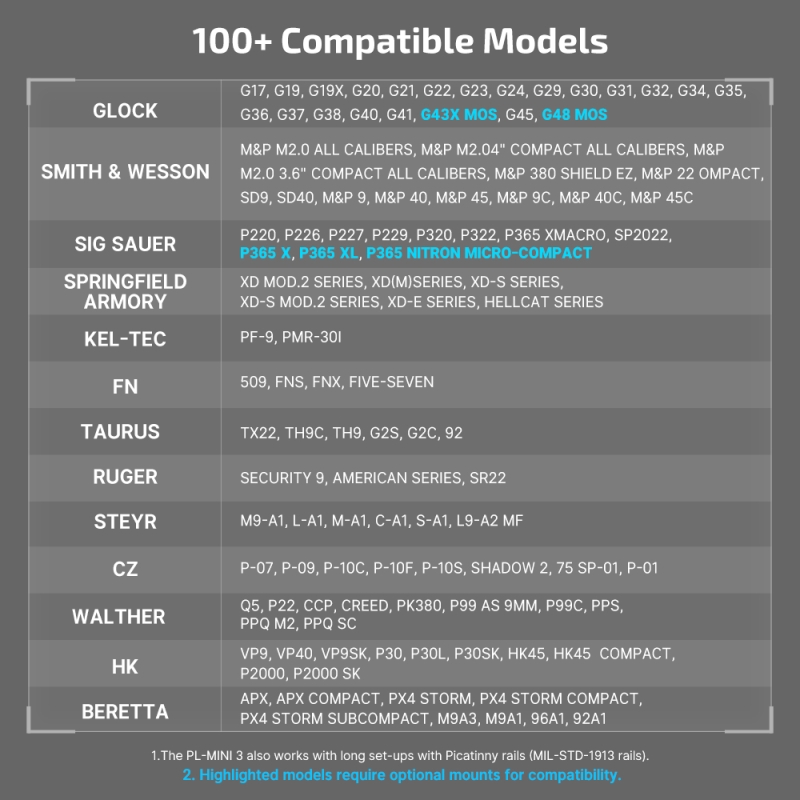 Montáž na RIS/Picatinny 1913 alebo pištole Glock umožňuje uchytenie na rôzne typy zbraní. Napájanie zaisťuje vstavaná Li-Pol batéria s kapacitou 260mAh a magnetickým USB nabíjaním (všetko je súčasťou balenia).