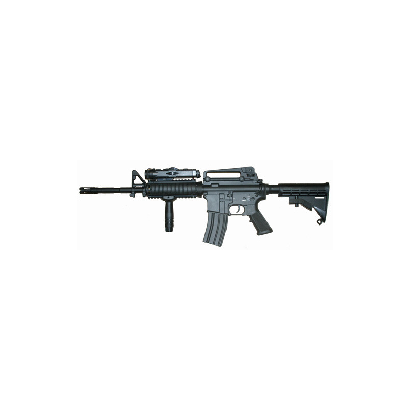 Útočná puška M4 RIS. Výrobce již do základní konfigurace zbraně instaluje odolný mechabox se 7mm ložisky a hlaveň z jednoho kusu. Zbraň je tedy již předurčena pri případný upgrade. Puška je celá kovová (kromě pažby a pažbičky). Kovové CNC předpažbí umožňuje připevnění řady příslušenství, jako je například svítilna, granátomet, dvojnožka...apod. Bohužel není schopno pojmout baterii a tak to výrobce řeší boxem na akumulátor ve tvaru laserového zaměřovače.