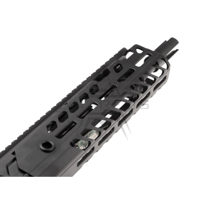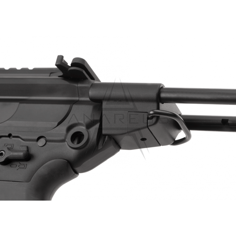 Replika sa môže pochváliť dlhou RIS lištou pre akúkoľvek optiku, mieridlá alebo kolimátory, CNC opracovaným predpažbím kompatibilným s M-LOK držiakmi pre vaše peqboxy a baterky na pozíciách 3, 6 a 9. Samozrejmosťou je nastaviteľná pažba typu PDW s tromi polohami pre pohodlie každého strelca. Nesmieme zabudnúť ani na funkčnú západku záveru či obojručný prepínač režimu streľby. Demontáž predpažbia a hlavne sa vykonáva rovnakým spôsobom ako na jej ostrom modeli. Na zbrani nájdeme celkovo 6 miest pre QD popruh.