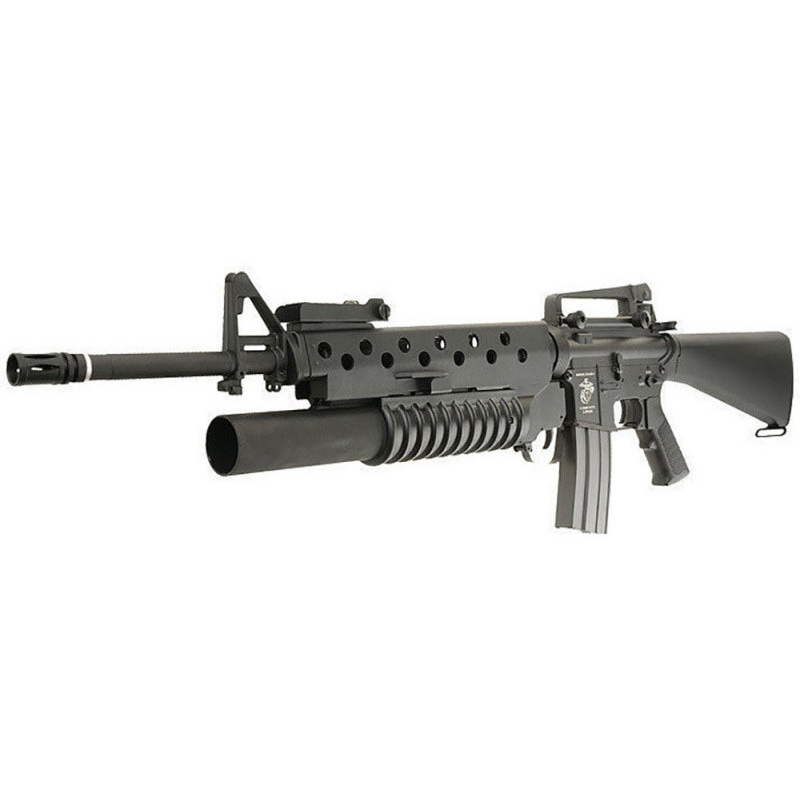 Zväčšiť Zbraň je osazena kovovým granátometem M203. Tento granátomet umožňuje klasické použití 40mm plynových granátů. Granáty nejsou v balení, ale můžete je zakoupit u nás v eshopu.