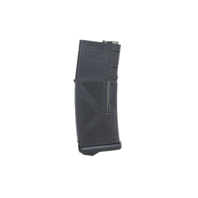 Unikátnou funkciou je možnosť prepnutia kapacity medzi 30 ranami (Real-Cap) a 130 ranami (Mid-Cap), čo ocenia ako milovníci realizmu a vyznávači Mil-Sim, tak aj hráči preferujúci vyššiu kapacitu na menej časté prebíjanie. Na plynulé podávanie guličiek je zásobník vybavený prodlženým podávačom (BBs followerom), ktorý minimalizuje plytvanie muníciou, čiže vystrelí aj poslednú guličku v zásobníku. Na oboch stranách sa nachádza priehľadné kontrolné okienko, cez ktoré môžete skontrolovať posledných 30 BBs v zásobníku. Na nabíjanie je nutné použiť plničku tlačných zásobníkov (nie je súčasťou).