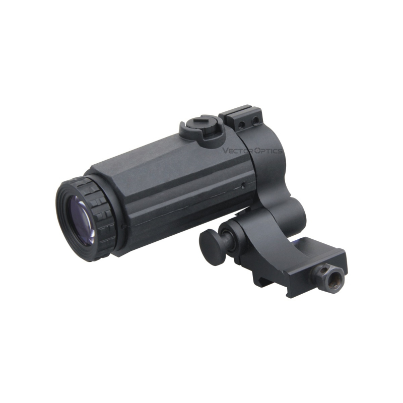Chcete mať jasný a čistý obraz pri streľbe na stredné vzdialenosti s kolimátorom? Hľadáte kompaktný magnifier, ktorý je krátky, ľahký a ľahko ovládateľný? Potrebujete systém, ktorý umožní okamžité odklopenie do strany a tým rýchle prepínanie medzi streľbou cez kolimátor na blízko a priblíženou optikou? MAVERICK-III 3x22 Magnifier od Vector Optics vám splní všetky tieto požiadavky. Tento kompaktný magnifier zlepšuje presnosť streľby na strednú vzdialenosť v kombinácii s kolimátorom. Ponúka 3× zväčšenie a plne viacvrstvové potiahnutie (FMC), ktoré zabezpečuje ostrý obraz bez skreslenia. Vďaka očnému reliéfu 69 mm poskytuje pohodlné mierenie aj pri rýchlych prechodoch. Súčasťou balenia je bočná Flip Side montáž na RIS lištu, ktorá umožňuje rýchle a intuitívne odklopenie magnifieru mimo os zbrane — ideálne na plynulé prepínanie medzi priblížením a voľným výhľadom cez kolimátor. Kompaktné rozmery a odolná konštrukcia z hliníka 6061-T6 zabezpečujú spoľahlivosť aj v náročných podmienkach. Výška stredu optiky 36 mm umožňuje kompatibilitu s väčšinou kolimátorov.