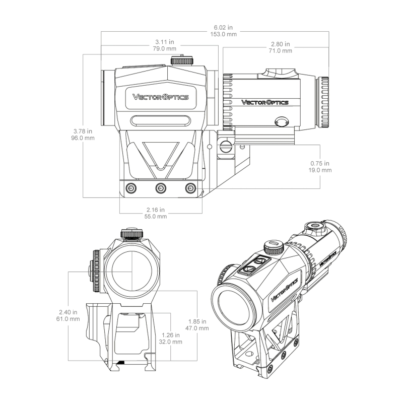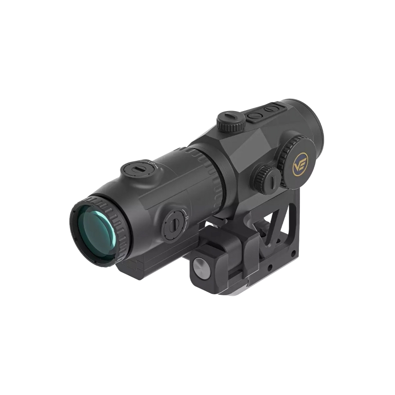 Vector Optics set kolimátora SCRAPPER 1×29 MTR a predsádky PARAGON 3× Magnifier s integrovanou FTS montážou ponúka rýchle 1× mierenie na blízko, 3× priblíženie pre stredné vzdialenosti a centrálnu výšku 61 mm pre moderné high-mount konfigurácie. Motion sensor šetrí batériu CR2032 (nie je súčasťou) s výdržou až 50 000 hodín. Konštrukcia je z hliníka 6061-T6. Kolimátor má 3 typy zámerného bodu.
