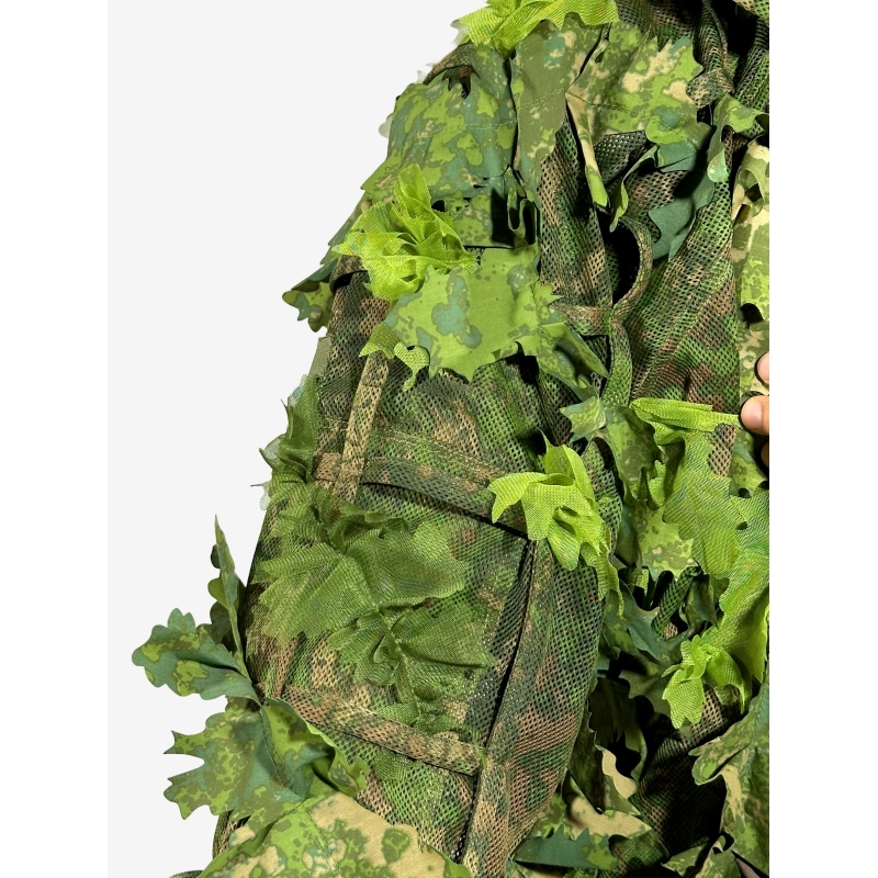Dokonalý maskovací komplet Ghillie Suit od KMCS (Kicking Mustang Concealment System). Ľahký dizajn s odolným prešívaním v úžasnej kamufláži Next-Gen Green. Jednoduché prispôsobenie postave. IRR maskovanie. Obria kapucňa s vnútorným drôtom pre držanie tvaru (možno nosiť s helmou). Možnosť pripnutia okolitej vegetácie. Zmes polyesteru a bavlny s KMCS...